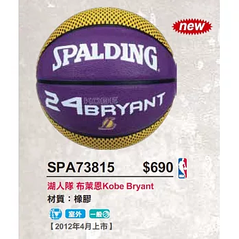 產品說明籃球斯伯丁籃球 12’’ BRYANT 湖人 73-815籃球斯伯丁籃球 12'' BR...