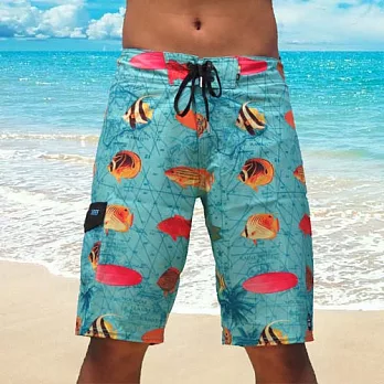 產品說明四向性彈性纖維側邊式口袋熱帶魚印花設計21" 英吋褲長...